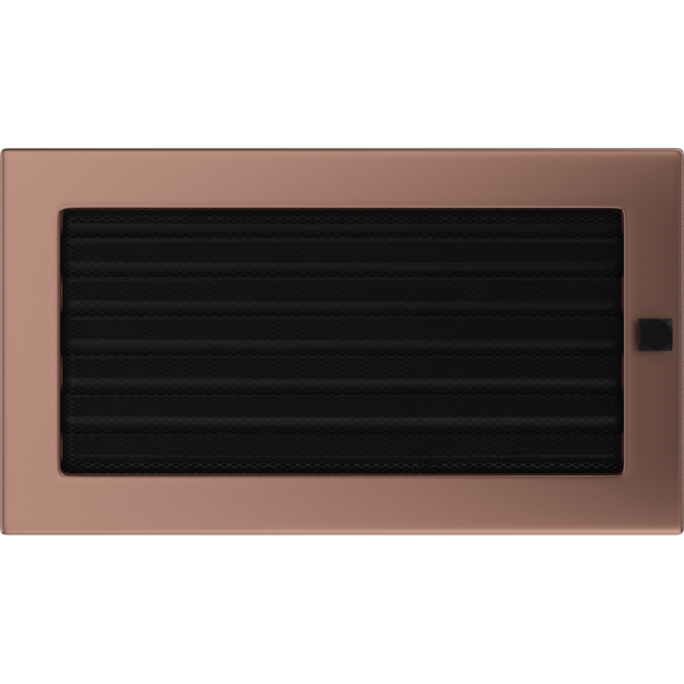 Решётка Kratki серия Прямоугольные цвета медь гальванизированная с жалюзи. Применяется в системе вентилирования. Сделана из металла, подходит для использования в каминных облицовках. Фронт решётки выполнен из металлической сетки. Обладает регулируемыми жалюзи, что позволяет перекрывать движение воздуха. Отличается простотой установки и устойчивому воздействию высоких температур.